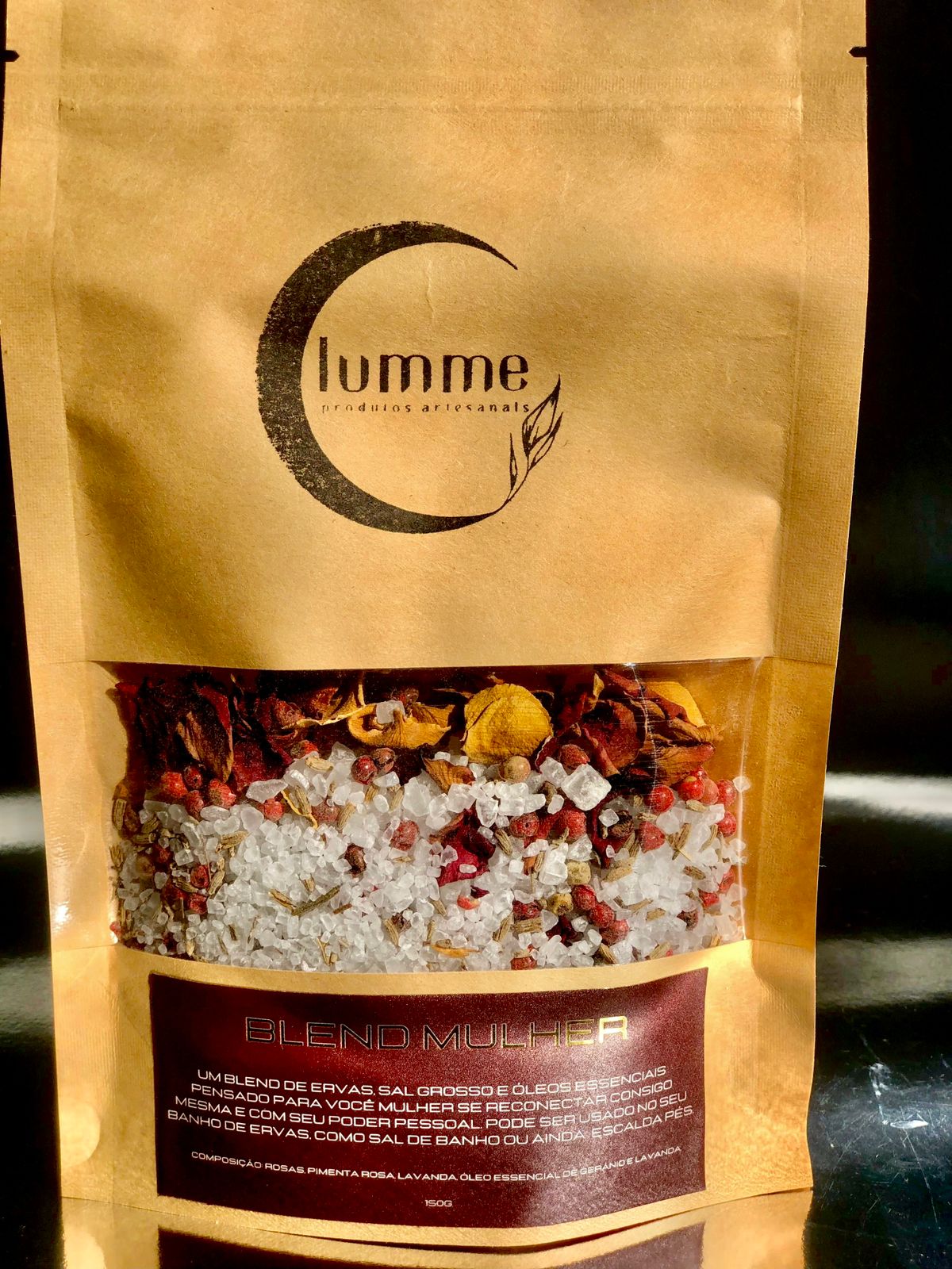 Mix de ervas (lavanda, rosas branas e vermelhas e pimenta rosa) óleos essenciais (gerânio e lavanda) e sal grosso. Ideal para você mulher que está em busca de uma reconexão com você mesma e com seu poder pessoal. Resgate da energia feminina.